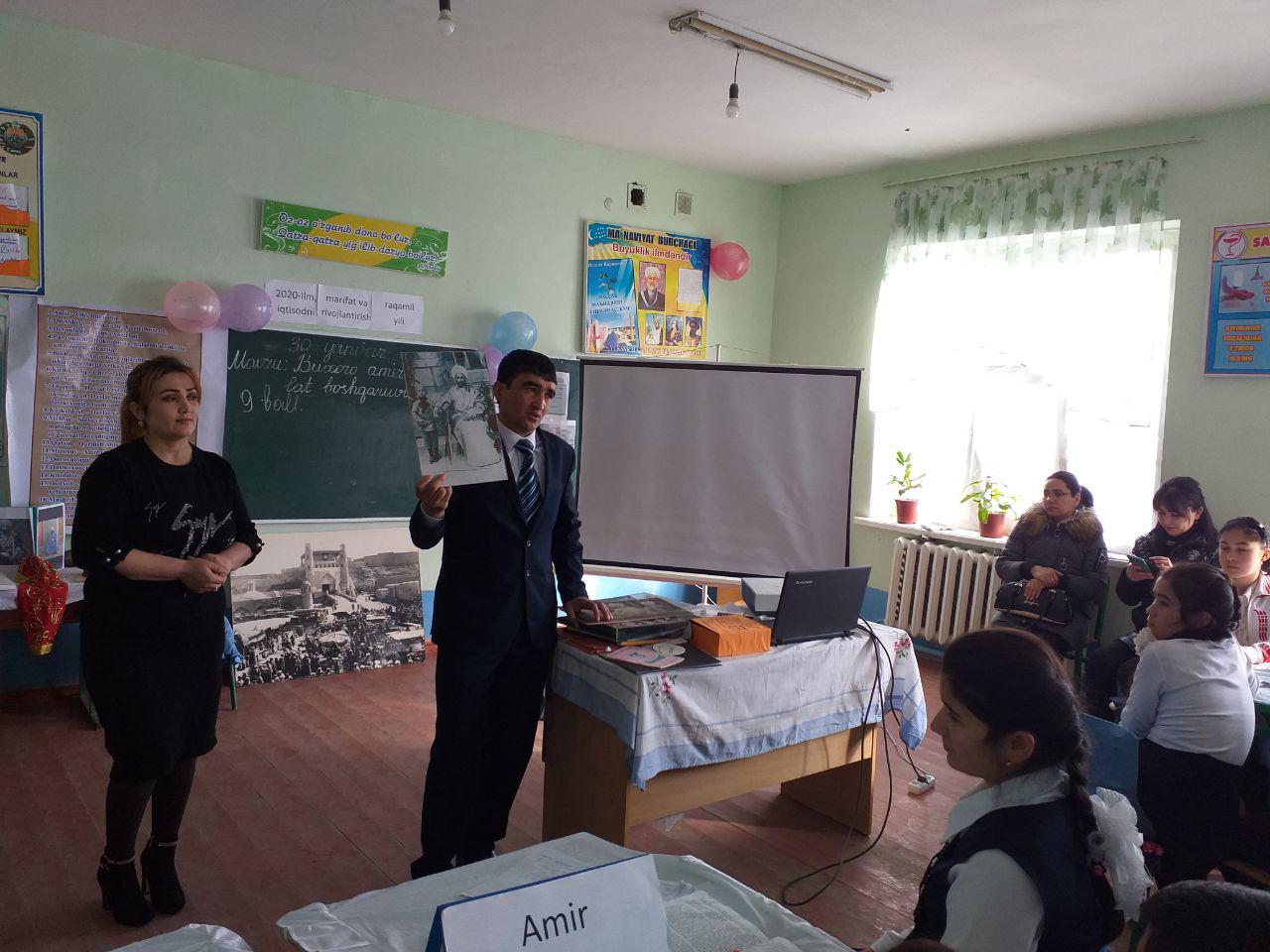 30-январь куни Бухоро давлат музей-қўриқхонаси илмий котиби, маърузачиси ва "Темирчилик ҳунари тарихи" филиали илмий ходимлари томонидан Бухоро туманидаги 38-мактабда тарих ва ҳуқуқ ойлиги муносабати билан ўтказилган "Бухоро амирлигида бошқарув тизими" мавзусидаги очиқ дарсда Бухоро амирлиги манғитлар сулоласи амирларининг суратлари, амирлик тангалари, Бухоро амирлиги тарихига доир китоблардан иборат кўргазмалари билан иштирок этишди. Шунингдек, Ўзбекистон Республикасининг биринчи президенти Ислом Каримов хотирасига бағишлаб ўтказилган тадбирда ҳам И.Каримов фаолияти ҳақида кўргазмали маъруза қилишди.