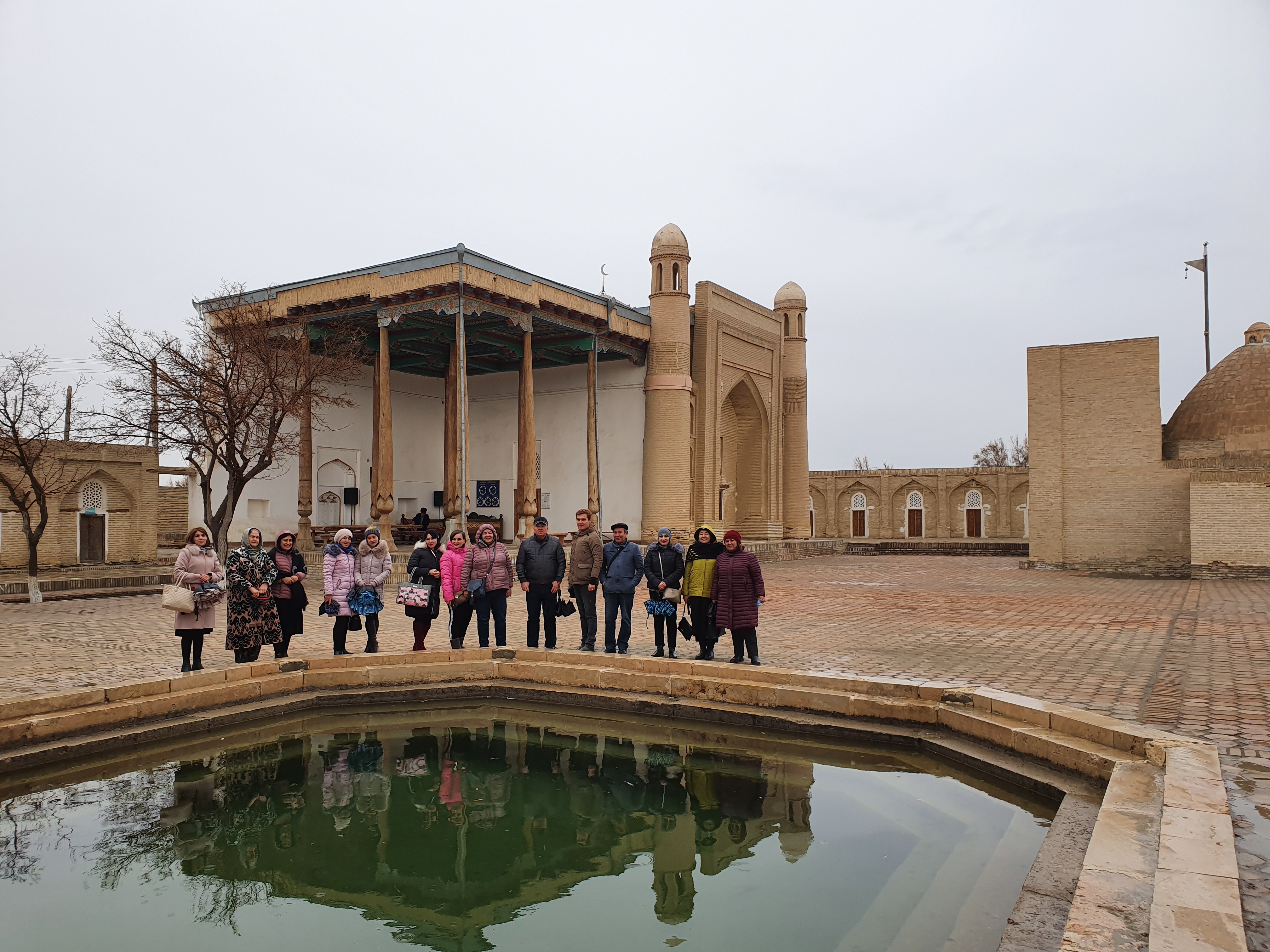 11 февраля экскурсоводы и сотрудники Бухарского государственного музея-заповедника во время выездного практического учебного занятия на культовом ансамбле «Кизбиби» и древнего городища Варахша.