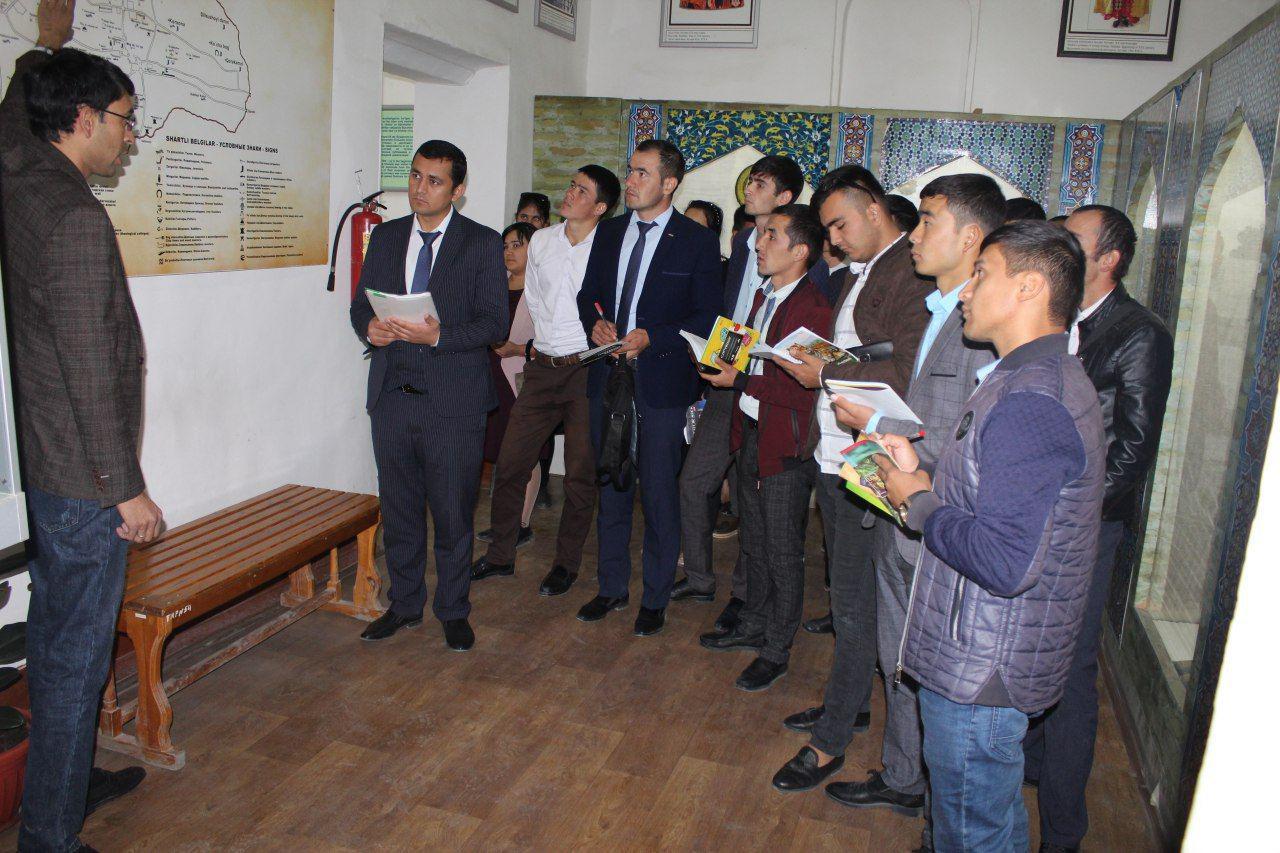 17-октябрь куни Бухоро давлат музей-қўриқхонаси Арк вилоят ўлкашунослик музейида Бухоро давлат университети ўқитувчиси Эргашев Ж. томонидан  Архившунослик та'лим йўналиши талабаларига "Топономика ва тилшунослик",  "Топономика ва тарих"  мавзуларида сайёр дарслари ўтилди.  Музей илмий ходимлари томонидан эса эспозиция залларида  талабаларга мавзуий экскурсиялар ўтказилди.