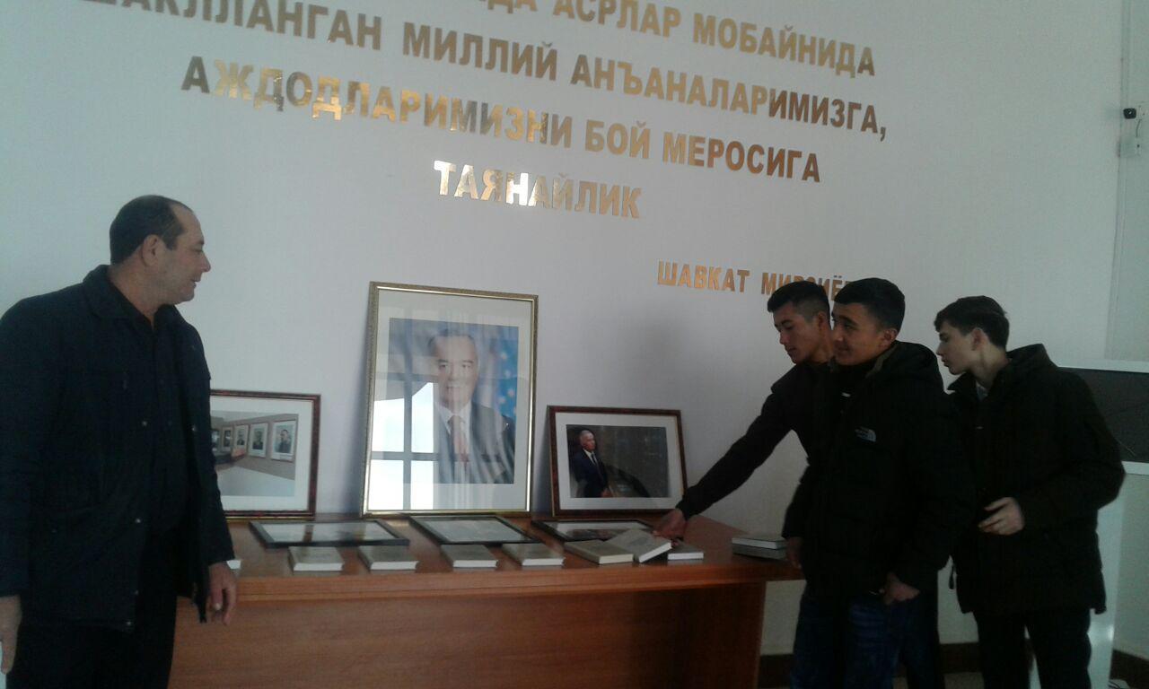 30-январь куни Абу Али ибн Сино мемориал музей филиалида музей илмий ходимлари тумандаги 4-мактаб билан ҳамкорликда Ўзбекистон Республикаси 1-президенти Ислом Каримов таваллудининг 82 йиллигига бағишланган тадбир ўтказилди