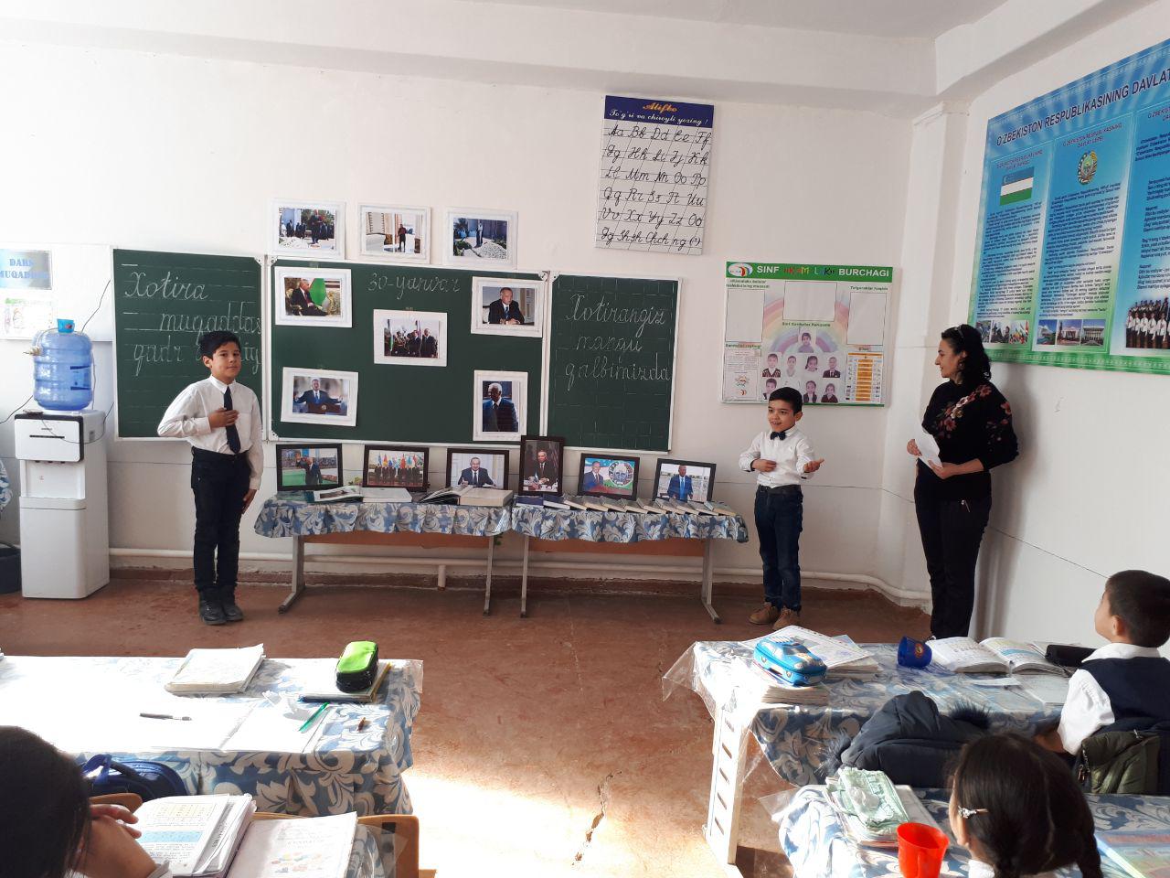 уй-музейи илмий ходимлари ташкил этишди. Тадбирда И.Каримовнинг мустақилликнинг илк йиллариданоқ барча соҳаларни ислоҳ қилишга, ривожлантиришга катта эътибор қаратгани, ёш авлоднинг янгича фикрлайдиган, ўткир зеҳнли, жаҳон миқёсида ўтказиладиган фестиваль ва мусобақаларда нуфузли ўринларни эгаллашлари учун барча шарт-шароитларни яратишга, уларнинг баркамол ва шижоатли бўлиб вояга етишлари, тинч ва мусаффо осмон остида яшашлари учун ўз ҳаётини бағишлагани қайта-қайта такрорланди. Музей илмий ходимлари синфларга ҳам кириб, давлат арбобининг таржимаи ҳоли, мамлакатимизда амалга оширган буюк хизматлари ва улкан ишлари, унинг ташаббускорлиги ва раҳнамолигида амалга оширилган тарихий ўзгаришлар, олиб борган иқтисодий-ижтимоий сиёсатнинг асосий устувор йўналишлари, юртимиздаги тинчлик ва осойишталик, барқарорликни мустаҳкамлаш, фуқаролар ўртасида тотувлик, турли миллатлар ўртасида ҳамжиҳатликни кучайтириш, мамлакатимизнинг мудофаа қобилиятини мустаҳкамлаш, Ватанимиз сарҳадлари дахлсизлигини кўз қорачиғидай асрашда олиб борган фидокорона хизматлари тўғрисида маърузалар қилишди.